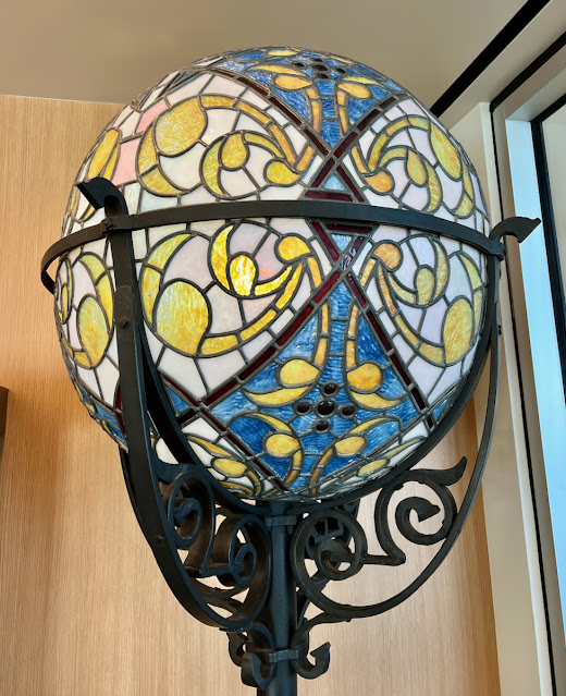 Two large Tiffany lamps are located within the Carnegie Reading Room at the Riverside Main Library (3900 Mission Inn Avenue, Riverside, CA). I was told by the library staff that the stained glass lamps were part of the furnishings of the original Carnegie Library that was once located in downtown Riverside.